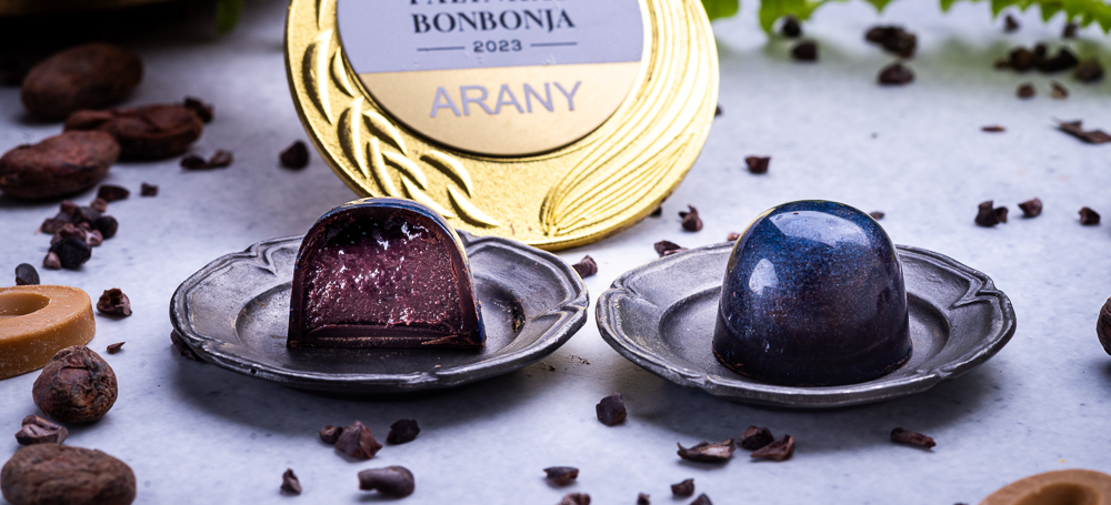 2023 az év pálinkás bonbonja versenyen arany fokozatot elért Kék bogyós szerelem . Áfonya zselé, feketeribizlis csokoládé, fekete berkenye pálinkával