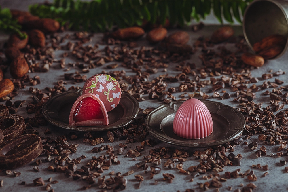 Rózsa, licsi, málna bonbon ruby csokoládéban